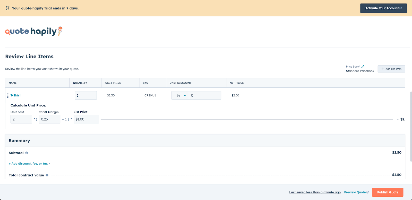 Here are five powerful ways quote•hapily enables tariff management directly inside HubSpot: